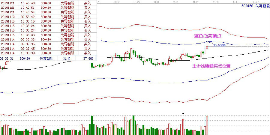 先導(dǎo)智能生命線啟動之后,11月22日攻擊到了目標(biāo)點藍(lán)色線,這是我們生命線穩(wěn)健買點的目標(biāo)點,按照規(guī)則可以獲利賣出。下面是具體的走勢圖: