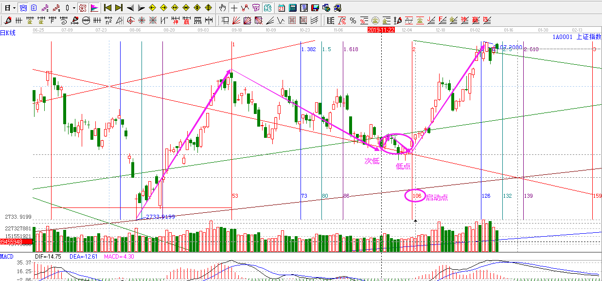 11月11日贏家江恩股票軟件預(yù)判走勢分析圖及11月29日分析截圖