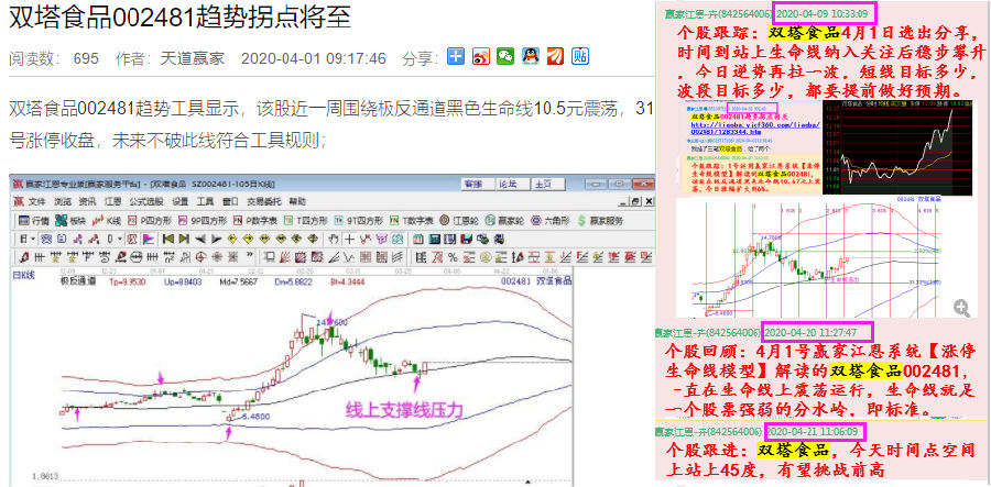雙塔食品,贏家江恩4月1日個股處于極反通道生命線以及百分比33.33%共振價格支撐位置?;仡櫷谖覀冞x出的經(jīng)典個股,其中就有一定比例的個股是在江恩百分比三分位或是半分位支撐和生命線共振的位置選出。歷史在不斷的重復,機會也在不斷的給出,善于總結和發(fā)現(xiàn),就一定能得到好的結果。
