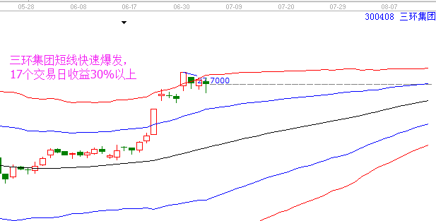 3、三環(huán)集團生命線到紅色上軌線快速爆發(fā),短短十幾個交易收益30%以上