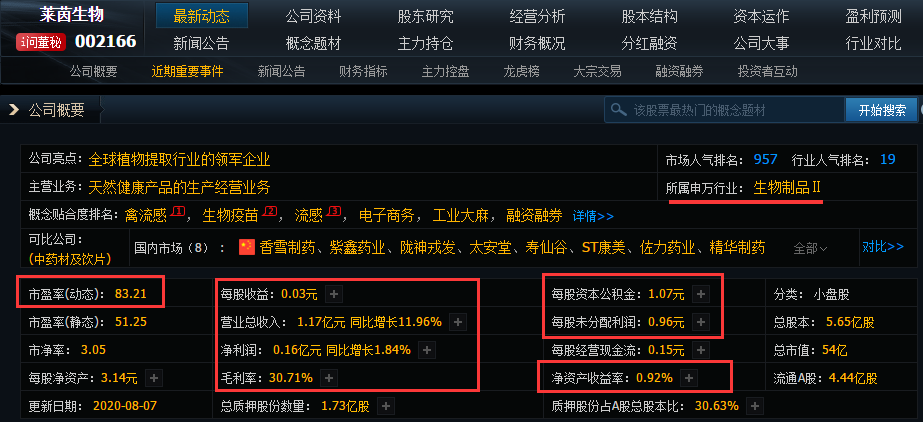 最后我們再來看看萊茵生物的財務(wù)數(shù)據(jù):