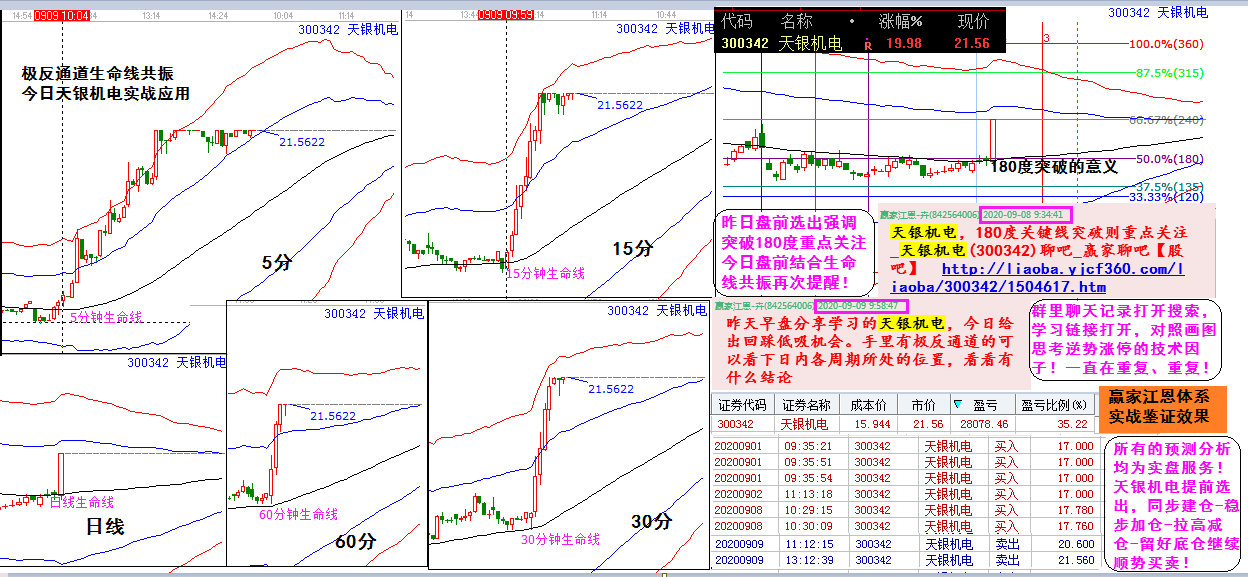 指數(shù)繼續(xù)如期殺跌,空間上已經(jīng)進(jìn)入第一預(yù)期支撐區(qū)間,但時間未到,弱勢反復(fù)再所難免。而如此弱勢的環(huán)境下,贏家江恩按照江恩時空規(guī)則篩選出的天銀機(jī)電,今日逆勢封板20%的利潤回饋給每位認(rèn)真關(guān)注贏家消息,懂得贏家模型與規(guī)則的朋友。今日不闡述具體技術(shù)要點(diǎn),都在圖中做了標(biāo)注,有心提升的朋友仔細(xì)看。