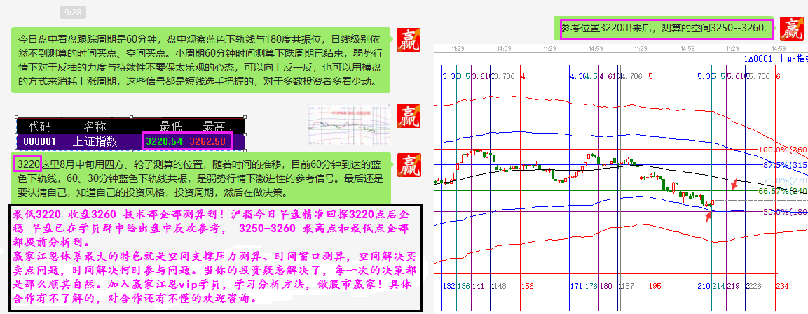 最低3220 收盤3260 技術(shù)部全部測算到!滬指今日早盤精準(zhǔn)回探3220點(diǎn)后企穩(wěn) 早盤已在學(xué)員群中給出盤中反攻參考位 3250-3260 最高點(diǎn)和最低點(diǎn)全部都提前預(yù)算出來。