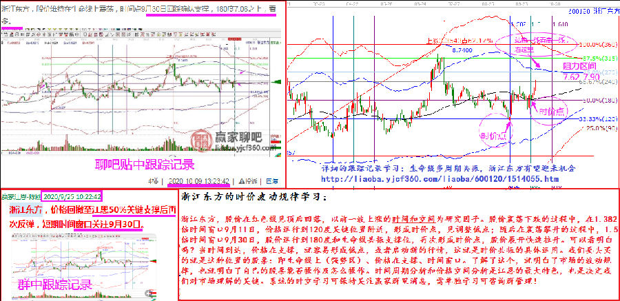 浙江東方,股價(jià)在紅色線見頂后回落,以前一波上漲的時(shí)間和空間為研究因子。股價(jià)震蕩下跌的過程中,在1.382倍時(shí)間窗口9月11日,價(jià)格運(yùn)行到120度關(guān)鍵位置附近,形成時(shí)價(jià)點(diǎn),見調(diào)整低點(diǎn);隨后在震蕩攀升的過程中,1.5倍時(shí)間窗口9月30日,股價(jià)運(yùn)行到180度和生命線共振支撐位,再次形成時(shí)價(jià)點(diǎn),股價(jià)展開快速拉升??梢钥疵靼讍??當(dāng)時(shí)間到達(dá),價(jià)格在支撐,就容易形成低點(diǎn),或者啟動(dòng)新的行情,這就是時(shí)價(jià)共振的具體運(yùn)用。我們要去買的就是這種位置的股票:即生命線上(強(qiáng)勢(shì)區(qū))、價(jià)格在支撐、時(shí)間窗口。了解了這個(gè),就明白了市場(chǎng)的波動(dòng)規(guī)律,也就明白了自己的股票能否操作及怎么操作。時(shí)間周期分析和價(jià)格空間分析是江恩的最大特色,也是決定我們對(duì)市場(chǎng)理解的關(guān)鍵。