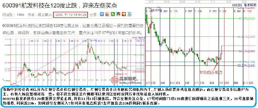 600391航發(fā)科技在120度重要支撐位止跌,并在11月13日被選出,符合左側關注點位,17號時間窗口對135度進行回踩確認之后連漲三天,20號直接強勢漲停,利潤近20%。如何進行左側買入?如何買在低點附近?怎樣抓住這20%的利潤?聯(lián)系客服。