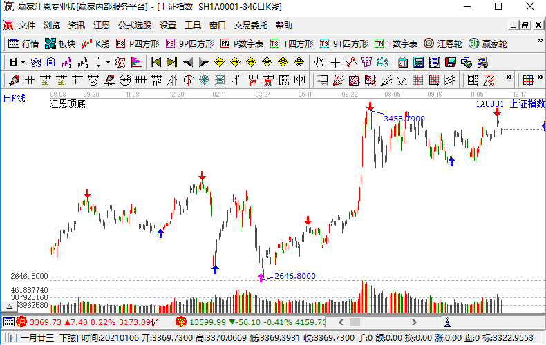 那么如何把控到頂部和底部呢?如何在趨勢(shì)轉(zhuǎn)折的時(shí)候做出對(duì)應(yīng)的操作來拿到最大利潤(rùn)并且避免下跌所帶來的虧損呢?可以通過波浪理論研究結(jié)構(gòu)找到頂部和底部,也可以通過道氏理論研究趨勢(shì)來幫助自己找到相應(yīng)的趨勢(shì)拐點(diǎn),甚至是可以通過江恩理論研究時(shí)間周期來找到市場(chǎng)的頂部和底部,但是能做到這些的往往也都是市場(chǎng)中的高手,擁有著豐富的經(jīng)驗(yàn)和專業(yè)技術(shù)。那么對(duì)于散戶來說如何判斷市場(chǎng)的頂部和底部呢?除了不斷學(xué)習(xí)專業(yè)知識(shí)之外,市場(chǎng)中也有一些智能的軟件來簡(jiǎn)單的幫助散戶找到頂?shù)住?/p>