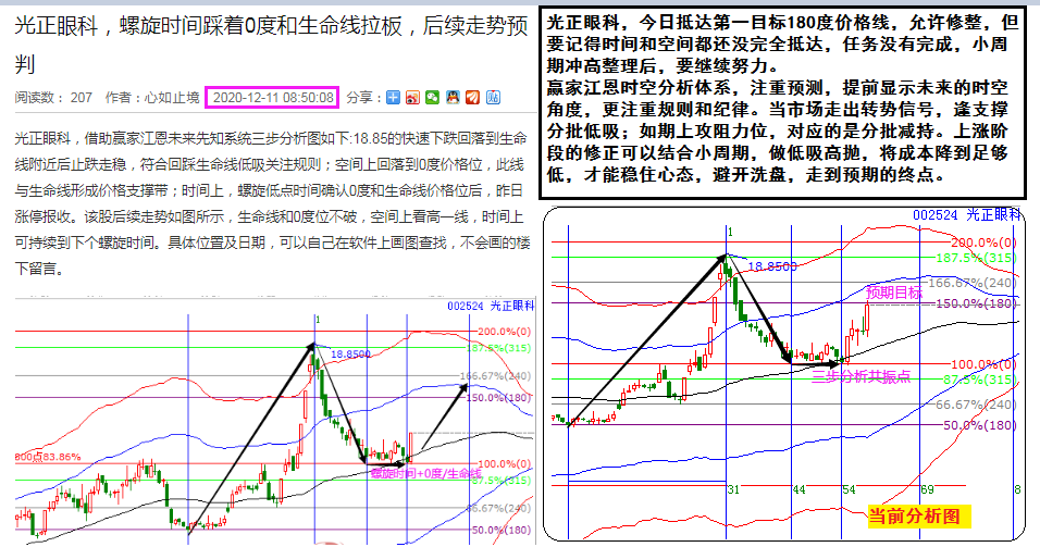 贏家江恩時空分析體系,注重預測,提前顯示未來的時空角度,更注重規(guī)則和紀律。當市場走出轉勢信號,逢支撐分批低吸;如期上攻阻力位,對應的是分批減持。上漲階段的修正可以結合小周期,做低吸高拋,將成本降到足夠低,才能穩(wěn)住心態(tài),避開洗盤,走到預期的終點。