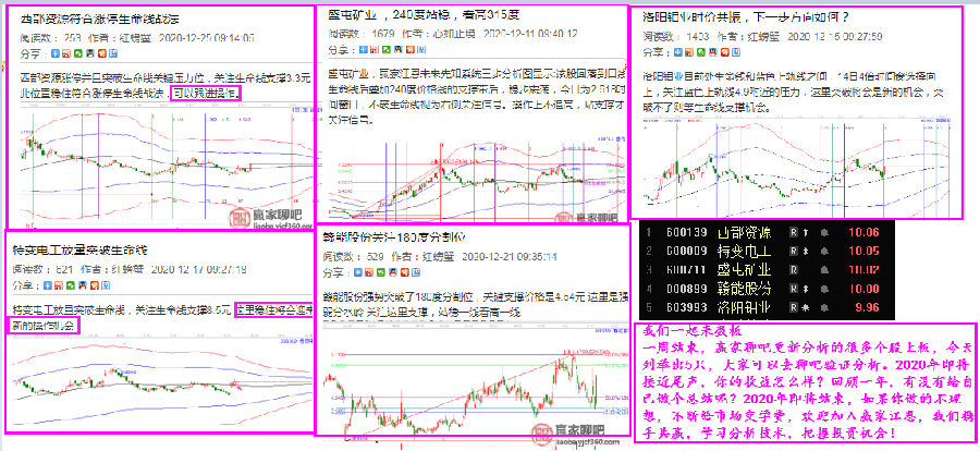 一周結(jié)束,贏家聊吧更新分析的很多個(gè)股上板,今天列舉出5只,大家可以去聊吧驗(yàn)證分析。2020年即將接近尾聲,你的收益怎么樣?回顧一年,有沒(méi)有給自己做個(gè)總結(jié)呢?2020年即將結(jié)束,如果你做的不理想,不斷給市場(chǎng)交學(xué)費(fèi),歡迎加入贏家江恩,我們攜手共贏,學(xué)習(xí)分析技術(shù),把握投資機(jī)會(huì)!