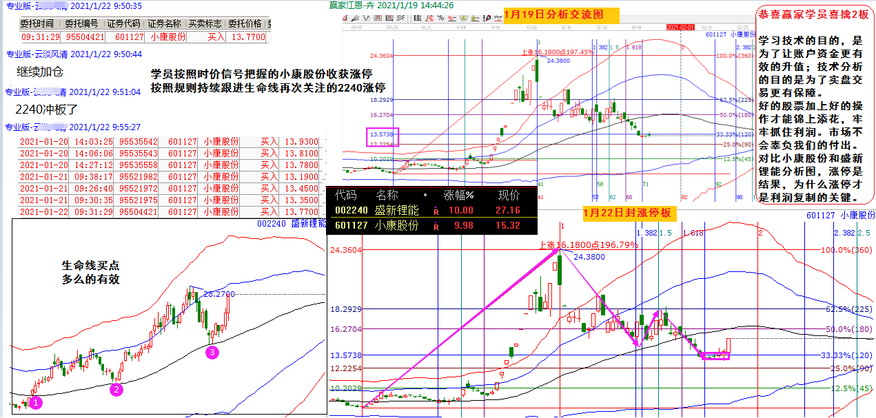 學(xué)習(xí)技術(shù)的目的,是為了讓賬戶更有效的升值;技術(shù)分析的目的是為了實盤交易更有保障。好的股票只有加上好的操作,才能錦上添花,牢牢抓住利潤。市場從來不會辜負(fù)我們的付出。對照小康股份和盛新鋰能的分析圖,時價信號擒獲小康漲停;2240生命線3次買點(diǎn)很標(biāo)準(zhǔn)!漲停是結(jié)果,知道為什么漲停,記下這個因子才是利潤復(fù)制的關(guān)鍵!你想要的是什么呢?