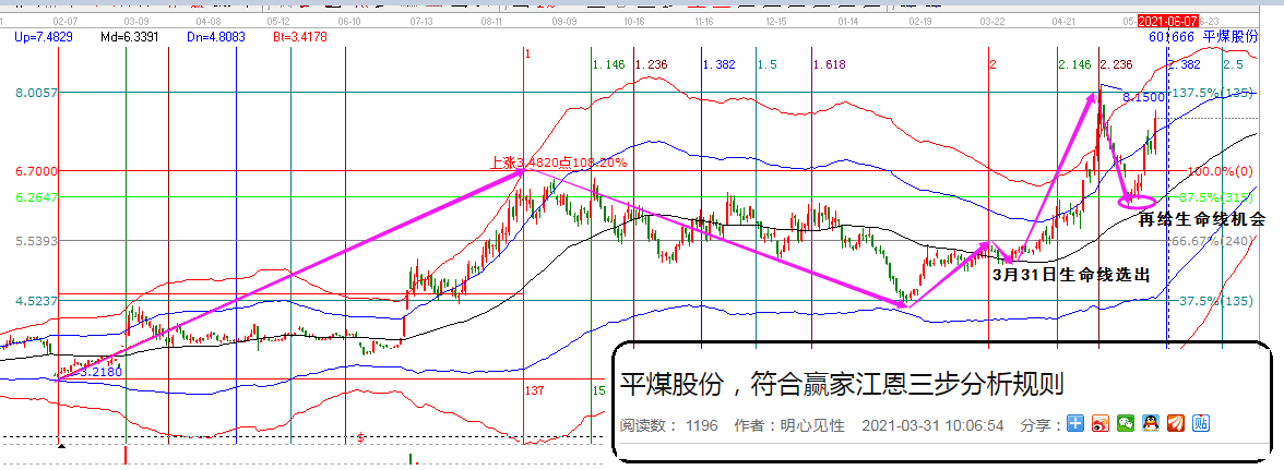 鄭州煤電,先看5月25日兩組歷史因子解讀時價信號,再看今天的實際走勢圖。有對比才能更明白交易信號的意義。贏家江恩學員可同步在軟件作圖學習。計劃你的交易,交易你的計劃。尊重市場信號,才能明明白白賺錢。