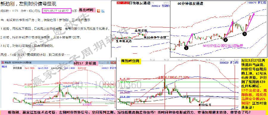 先看5月27日選出分析與圖形,再對(duì)比當(dāng)前分析圖,在過(guò)去和現(xiàn)在的實(shí)際走勢(shì)對(duì)比中,學(xué)習(xí)江恩時(shí)價(jià)四方的應(yīng)用。當(dāng)周線時(shí)價(jià)信號(hào)出現(xiàn)后,股價(jià)從45度開(kāi)始上漲,已經(jīng)運(yùn)行到了預(yù)期的120度目標(biāo)附近。17個(gè)交易日,底部低吸,踏實(shí)穩(wěn)當(dāng)超安全的20%利潤(rùn)!踏實(shí)明白的賺錢(qián),遠(yuǎn)比稀里糊涂的利潤(rùn)要可靠的多?! ?/p>