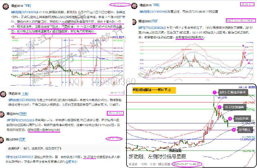 5月27日,按照江恩時價法則,左側底部選出新勁剛。一路跟隨解讀,直至8月11日見45元高點。按照江恩時價法則強調此位置重要性,并給出38.27右側頂部確認位,并再次強調本輪調整的預期空間。所有的分析全部有記錄,有留痕供回顧學習。有心的群友請逐一對應體會,掌握江恩時空波動法則,交易的主動權就在自己手中。當你能用專業(yè)的視角完完整整的跟蹤一只標的:從底部選出,到洗盤震蕩,再到快速拉升,直到頂部構建,甚至新循環(huán)的開始。你會更加明確你在股市的目的與意義。