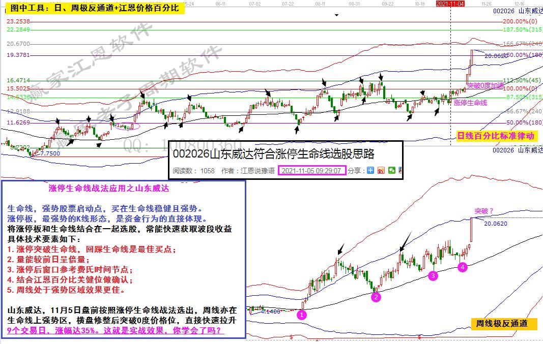 山東威達(dá),11月5日盤(pán)前按照漲停生命線戰(zhàn)法選出,周線亦在生命線上強(qiáng)勢(shì)區(qū),橫盤(pán)修整后突破0度價(jià)格位,直接快速拉升。9個(gè)交易日,漲幅達(dá)35%。這就是實(shí)戰(zhàn)效果,你學(xué)會(huì)了嗎?