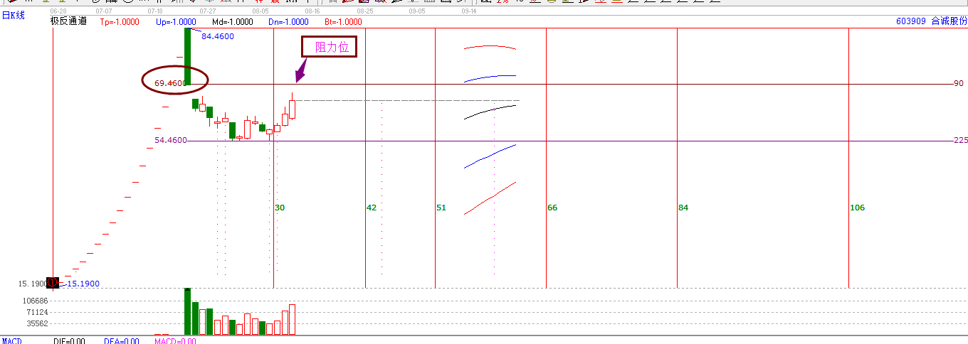 3.江恩工具分析共振:在603909的帖子和群消息中,我們講的很清楚。時間上,螺旋歷法時間循環(huán)線與輪中輪變盤點兩個不同的工具,在9號都出現(xiàn)了時間窗,形成了時間的共振。在價格上,處于K線價格四方形的支撐位。在選擇的時候,個股也處于極反通道生命線的上方。因此9號的時候在帖子里講,時間共振+價格支撐+極反通道生命線。這么多的共振了,還需要多說什么,一個字——買。