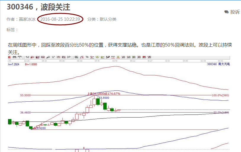 2.工具分析:在江恩理論中,半分位的位置是最重要的,也就是50%的位置,在個(gè)股從上往下回調(diào)至50%的位置,往往會(huì)形成止跌,是重要的支撐位,反之,當(dāng)個(gè)股從下往上反彈至50%的位置,往往會(huì)形成頂部,50%的位置也就是重要的阻力位。按照買在支撐賣在阻力的操作規(guī)則。那么50%支撐就可以買進(jìn),到達(dá)50%阻力位就是賣出的時(shí)候。在當(dāng)前個(gè)股剛好回踩并確認(rèn)了支撐的有效性,就形成了買點(diǎn)。