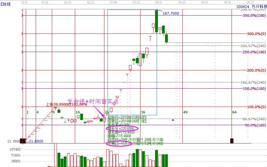 按照上述的理論基礎,贏家江恩依據時間窗和價格支撐共振的買點模型,于2017年12月15日選股華森制藥,截止2018年1月19日,共29個交易日,上漲近2倍,一波大妖形成。