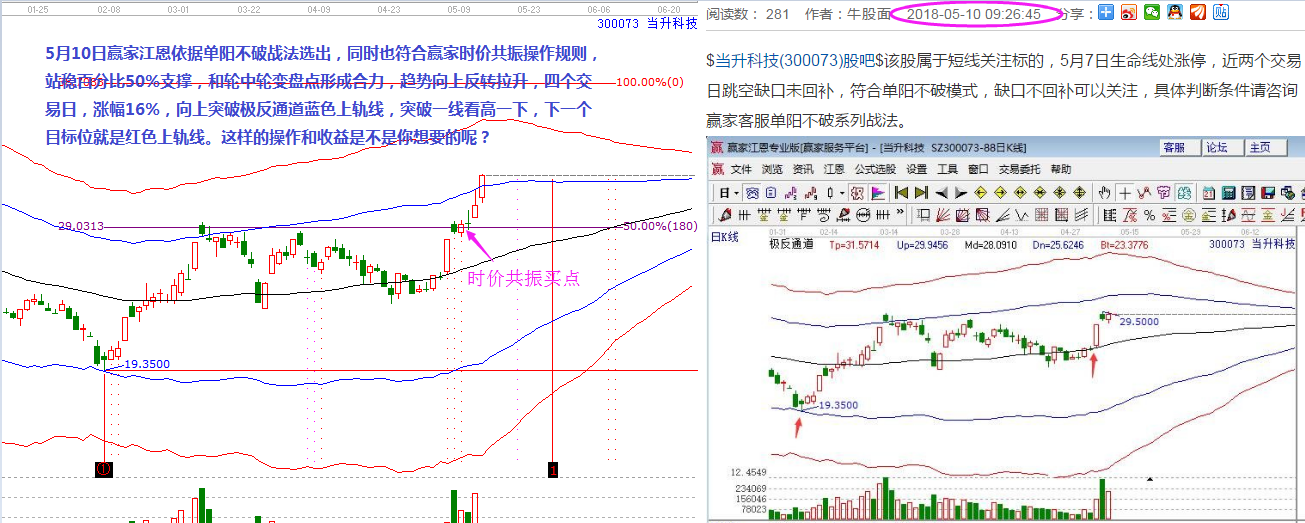當升科技,5月10日贏家江恩依據(jù)單陽不破戰(zhàn)法選出,同時也符合贏家時價共振操作規(guī)則,站穩(wěn)百分比50%支撐,和輪中輪變盤點形成合力,趨勢向上反轉(zhuǎn)拉升,截止14號高點,三個交易日,漲幅16%。