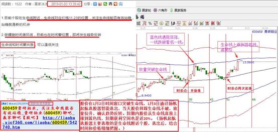 1月3日關(guān)注個(gè)股貴研鉑業(yè)(600459),同樣,股價(jià)在1月2日時(shí)間窗口突破生命線(xiàn),1月3日通過(guò)揚(yáng)帆起航選股器智能選出,當(dāng)天股價(jià)回踩生命線(xiàn)不破,放量拉升,確認(rèn)趨勢(shì)反轉(zhuǎn)。短期內(nèi)股價(jià)從生命線(xiàn)直接上漲到藍(lán)色線(xiàn),短期獲利空間也是近20%。(揚(yáng)帆起航選股器主要選取的是生命線(xiàn)附近個(gè)股,選出后,結(jié)合時(shí)間和價(jià)格精細(xì)把握。)