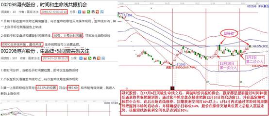 潯興股份,在12月6日突破生命線(xiàn)之后,兩波時(shí)價(jià)共振的機(jī)會(huì),贏家都是提前通過(guò)時(shí)間和極反通道的共振把握到的。通過(guò)輪中輪變盤(pán)點(diǎn)精準(zhǔn)把握12月10日的啟動(dòng)窗口,并在贏家聊吧和群中公布,此后市場(chǎng)連續(xù)漲停,短期獲利空間打30%以上;1月2日再次通過(guò)等距時(shí)間周期線(xiàn)把握到市場(chǎng)的啟動(dòng)點(diǎn),并精確提示目標(biāo)位9.69,股價(jià)在漲停突破此位置之后陷入震蕩走勢(shì),該股短線(xiàn)的獲利空間也是達(dá)到近30%??梢?jiàn),好的股票可以反復(fù)做,而通過(guò)極反通道生命線(xiàn)和時(shí)間窗口選擇個(gè)股就是最簡(jiǎn)單的方法。