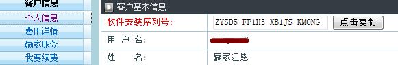 3)點(diǎn)擊左側(cè)的個人信息,即可看到序列號,單擊“點(diǎn)擊復(fù)制”按鈕,粘貼過來即可。