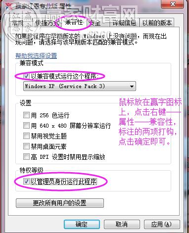 2) 兼容性的問題,win10系統(tǒng)需要設(shè)置兼容性,點(diǎn)擊右鍵打開軟件就不會提示過期了。方法:鼠標(biāo)放在贏字圖標(biāo)上,點(diǎn)擊右鍵——屬性——兼容性——以兼容模式運(yùn)營和以管理員身份運(yùn)行此程序,兩項(xiàng)前面打勾選中——點(diǎn)擊確定即可。