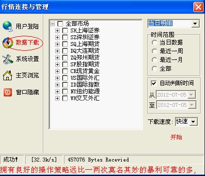 1)單擊你要下載的行情品種前面的四方框,會有對勾出現(xiàn);