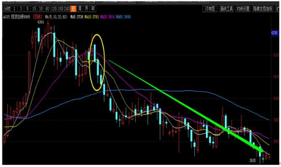 舍子線,行情跳空上漲形成一條十字線,隔日卻又跳空拉出一根陰線,暗示行情即將暴跌。此時價格漲幅已經(jīng)相當大,無力再往上沖,以致跳空而下,為賣出信號。