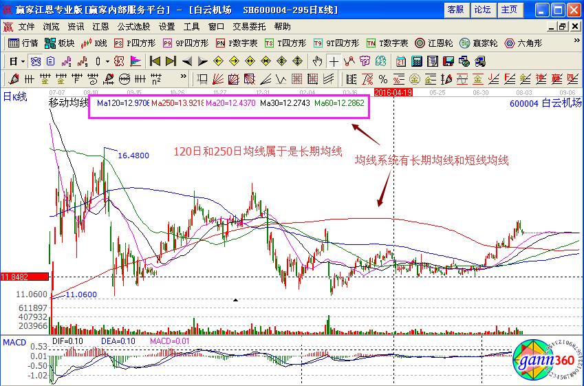 咨詢:13333833889在均線系統(tǒng)中,有季線系統(tǒng)和線系統(tǒng)兩種。其中季線系統(tǒng)有60日、40日、 20日均線,主要用來反映中長期走勢。而月線系統(tǒng)有30日、10日、5日均線,主要用來反映個股的中短期的走勢。而要用30日均線來作為月線系統(tǒng)的基線,原因是國內(nèi)股市當中的中級行情都是以30個交易日為明顯的周期,30日均線則要能更好的反映個股的中短期走勢。