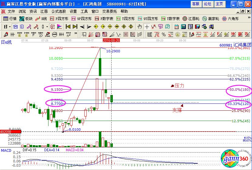 當然在股市的操作中,投資者也可以用波段百分比來分析當前位置的支撐位和阻力位,從圖中可以看出當前位置的支撐是在33.33%線的位置,而壓力是在50%線的位置,也就是1/2的位置,投資者要注意其中的操作風險,在下跌的走勢中,選擇反彈的高點進行獲利操作。