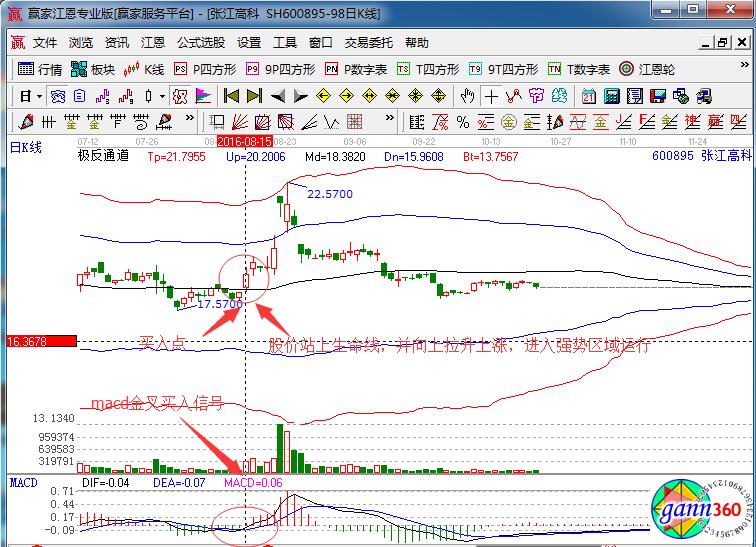 當(dāng)然具體的個(gè)股走勢(shì)舉例如圖張江高科,在2016年8月份的股價(jià)走勢(shì),8月15日上漲突破極反通道生命線上方,并形成大陽線,進(jìn)入強(qiáng)勢(shì)區(qū)域運(yùn)行,同時(shí)macd指標(biāo)形成了金叉買入信號(hào),量能逐漸放大,預(yù)示著上漲的行情走勢(shì),是一個(gè)不錯(cuò)的買入點(diǎn)位置,希望投資者能夠把握其中的操作機(jī)會(huì)。