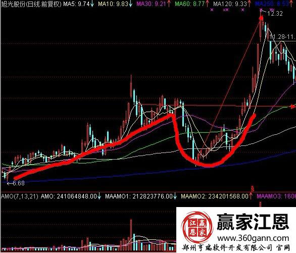 具體的個股案例如圖旭光股份在日線圖中的走勢形態(tài),股價經(jīng)過前期的一波拉升之后,在一個階段性的高點位置開始下跌,在股價以小陽小陰線接近底部的時候,股價出現(xiàn)止跌企穩(wěn)的現(xiàn)象,對應的成交量嚴重縮量,符合彎弓射箭的基本形態(tài),而且前期股價下跌的幅度超過了30%,股價在低點位置向上突破5日均線,并以5日均線為支撐向上不斷的拉升,是一個上漲的行情走勢,大膽的投資者可以積極的進行介入。
