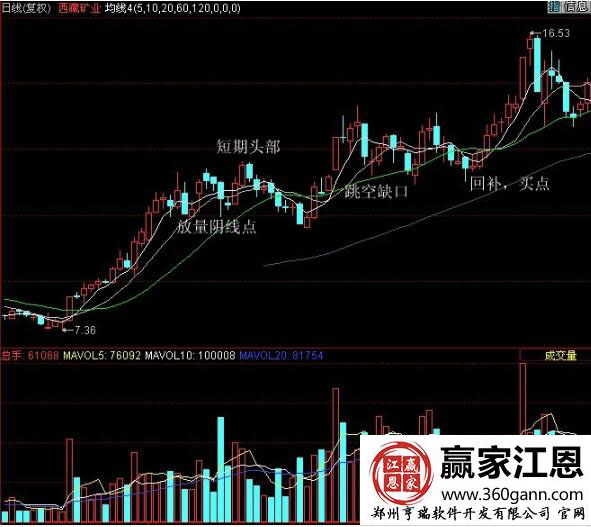 西藏礦業(yè)(000762)從7.36元的低點開始啟動拉升,連續(xù)上漲了多個交易日出現(xiàn)了放出巨量的陰線點,并且形成了短期頭部,之后在高位小幅的橫盤運行,頭部形態(tài)之后必然會出現(xiàn)下跌回調(diào)的走勢形態(tài),股價獲得均線的上漲支撐,出現(xiàn)跳空缺口,拉升幾個點的漲幅,之后回踩前期頭部點位,不破支撐,可以進(jìn)行加倉買入操作,等待后市的上漲獲利,在出現(xiàn)均線拐頭向下的走勢時,及時的賣出獲利。