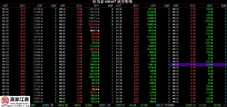 所謂的快就是快速找出快速掛單。在每日9:26分左右漲跌停龍虎榜上找,若有符合買進(jìn)條件,然后立即以漲停價(jià)掛單買入。還是以好當(dāng)家為例,下圖是好當(dāng)家的成交量明細(xì)。