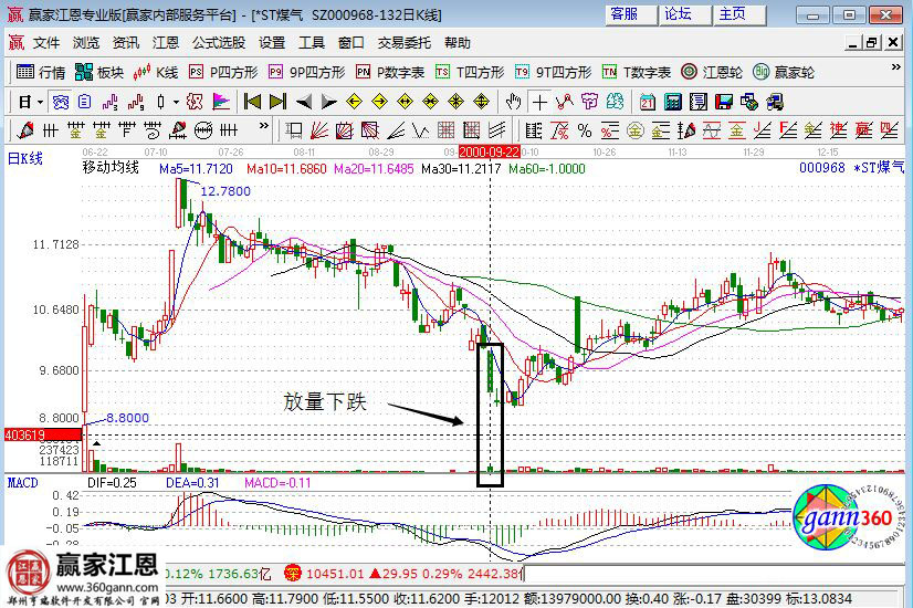 神州股份在2000年6月22日上市,當(dāng)日最低價(jià)8.8元,7月12、13日僅拉兩根長(zhǎng)陽(yáng)線見(jiàn)頂回落,整體漲幅僅20%,9月26日最低探至9.02元,離前期低位僅半步之遙,該股9月22日放量下跌,10月23日突破中短期均線,完全符合我們所說(shuō)的額搶反彈的標(biāo)準(zhǔn),所以這種操作投資者是可長(zhǎng)可短,進(jìn)退自如。