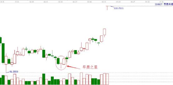于十字星組合而成的k線組合是“早晨之星”和“黃昏之星”早晨之星預(yù)示著下跌趨勢(shì)的止跌反轉(zhuǎn)向上,黃昏之星,預(yù)示著頂部降臨的警示信號(hào)。