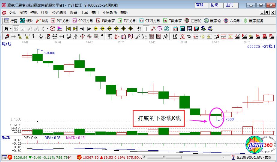 2、成交量:前一周的成交量非常低,且本周成交量比上周多4-5倍,此時可以放心買入。