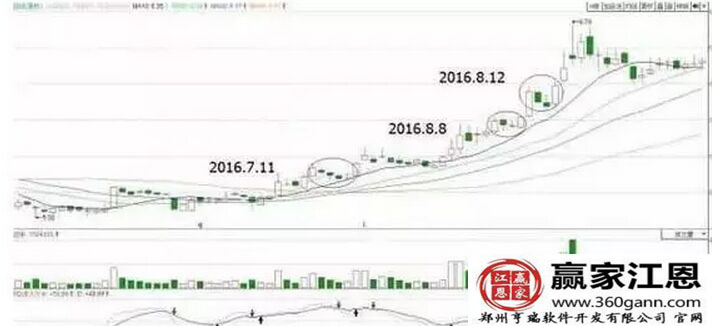 為什么要是上面這樣的走勢?因為我們主力在做強勢股的時候在K線上的表現(xiàn)是一根陽線,所以第一根陽線,是一種基礎,然后出現(xiàn)雙陰線或者三根陰線,這個說明有人可以在進行打壓或者說是在出貨,如果是主力主攻出貨,那么隨后的陽線一定不會接近前一根陰線的最高點,顯然這么說來,這個陽線接近或者超過前一根音信啊的最高點的,足以說明了主力自己的繼續(xù)買入,同樣就預示著該股將會突破。接下來看下面的圖形.