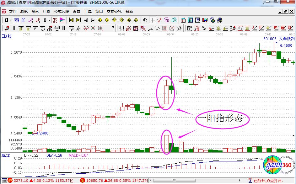 什么是K線形態(tài)?它其實(shí)指的就是一根平底的大陽(yáng)線,當(dāng)然它的自身的條件就是巨幅低開。因?yàn)檫@樣的大陽(yáng)線之后,一般都會(huì)伴隨著非常不錯(cuò)的機(jī)會(huì)。如果是在相對(duì)低位出現(xiàn)一陽(yáng)指并且來(lái)量能也是巨放且連續(xù)量能比較強(qiáng)的話,那么在一陽(yáng)指成形的時(shí)候或者次日逢低進(jìn)行建倉(cāng),這是個(gè)對(duì)于抓連續(xù)大陽(yáng)勝算是比較大的。具體大家可以參考下圖中的一陽(yáng)指來(lái)進(jìn)行辨別。