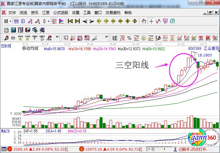 三空陽(yáng)線是怎么樣的?如果是從文字上來(lái)講的話,它就是三次跳空的陽(yáng)線走勢(shì),如下圖所示。當(dāng)然能夠鄒城下面的走勢(shì),肯定是和市場(chǎng)出現(xiàn)的利好消息有關(guān)的,而且這個(gè)利好消息讓價(jià)格無(wú)法在一個(gè)交易日內(nèi)進(jìn)行消化,當(dāng)然還有看你呢過(guò)是由于個(gè)股的籌碼極度集中,主力在拉抬股價(jià)時(shí)阻力是非常小的,這兩種情況都是可以導(dǎo)致空頭斬倉(cāng)盤不斷增加的,股價(jià)連續(xù)腎功能沖,連續(xù)收出陽(yáng)線。