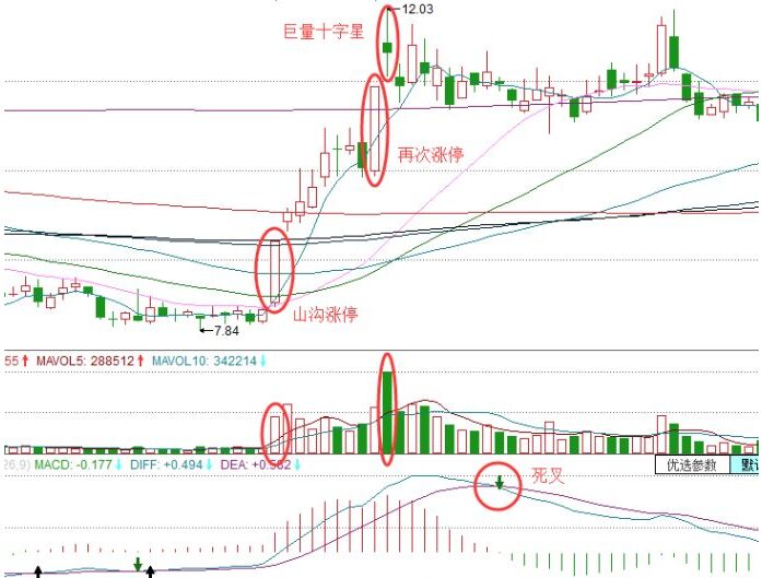 3、 止損。我們從上面的內(nèi)容可以知道,山溝漲停的位置是非常底的,所以相對來說是比較安全的在,還有跌破整個漲停板實體才可以進行考慮止損。