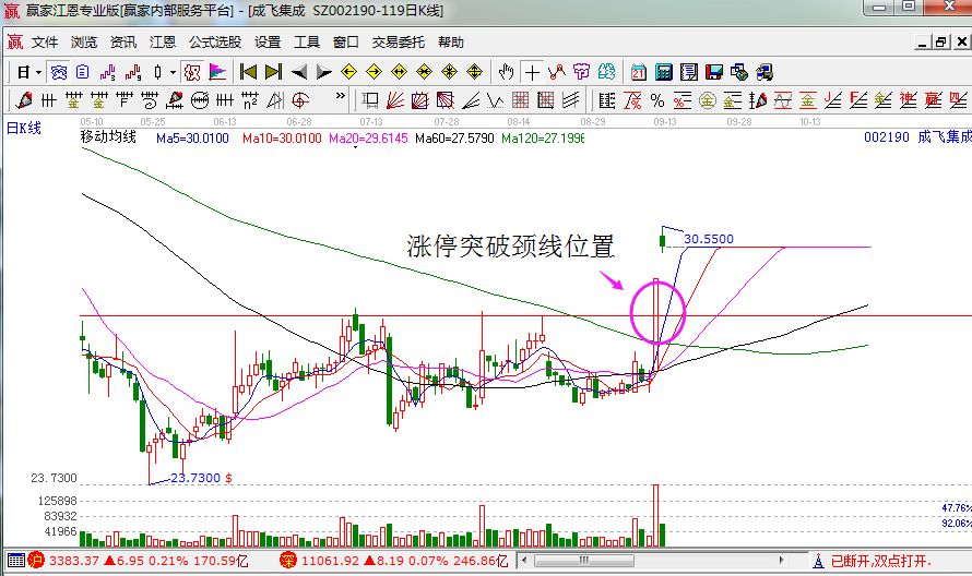 通過對于股票的研究,小編發(fā)現(xiàn)漲停最容易出現(xiàn)在突破下降壓力線位置、突破重要的頸線位置,當(dāng)然還要突破上升通道上軌、改變上升速率的位置、均線多頭(30日線)的挖坑位置。顯然位置是非常重要的,但是對于關(guān)鍵的起漲點(diǎn)也是需要消息的刺激的,這樣才能夠狙擊成功。