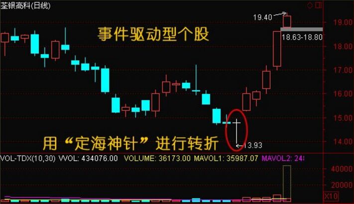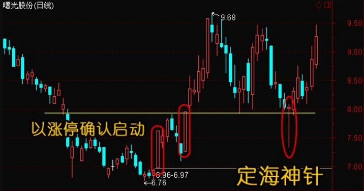 曙光股份在出現(xiàn)回踩支撐位,次日當(dāng)太難上漲,緊接著繼續(xù)上漲,并且出現(xiàn)了明顯的定海神針形態(tài)。如下圖所示。