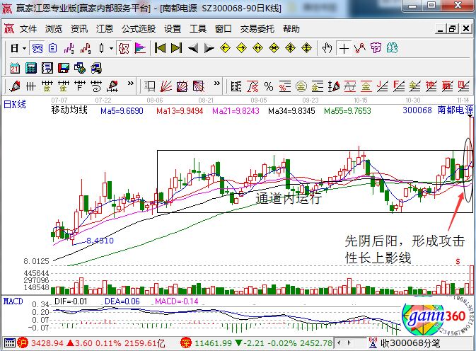 在攻擊性長下影線的下一個交易日開盤后,9點45分之前,該股如果快速的突破前一個交易日的日均價并且放量,有效站穩(wěn),則表示前一個交易日的放量長上影線屬于試盤行為,所以投資者可以大膽買入。買入的點位,就可以掛在均價線附近,或者是極反通道生命線附近.