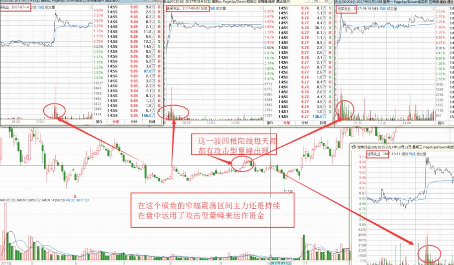 攻擊型量峰是怎么樣的?它指的就是在交易過程中,主力機構在盤中不間斷地持續(xù)投入大筆資金積極買進所造成的股價在特定時間段發(fā)生劇烈波動的現(xiàn)象。由于攻擊型量峰在盤中不間斷的持續(xù)性大筆資金的投入,這就決定了不可能是小資金的行為,所以投資者對于這樣的股票挖掘是具有實戰(zhàn)意義的。如下圖所示。