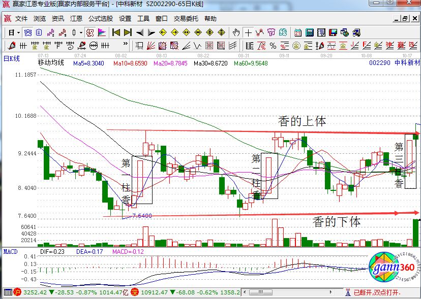 三柱香形態(tài)一般是以一漲停為基準短期內呈現(xiàn)n型回落不破前漲停日低點,形態(tài)次之的是呈現(xiàn)N型會做,回調到達下軌線果斷的買入,上漲到上軌果斷的賣出。該形態(tài)的時間上特征就是:從最高點回調下來的第2天、第5天、第7天、第8天的關鍵時間周期買賣點,這個形態(tài)的個股一般是回調到第5天、第8天的時候才會有機會買入,超過13天不起則行情就會走弱,所以投資者就應該果斷的賣出。