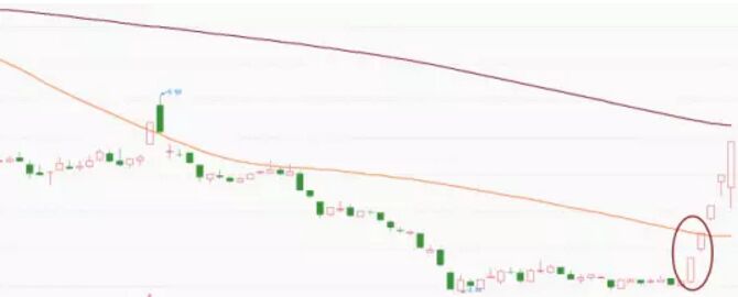 從上圖我們可以看到,這只股票在經(jīng)過長期下跌后一段時(shí)間橫盤拉出第一個(gè)漲停隨后第二天繼續(xù)封板,這其實(shí)就是啟動(dòng)性的漲停,既然能夠連續(xù)能夠封兩個(gè)板,自然后面還會(huì)有連板,所以第二個(gè)漲停板的位置就是最佳的進(jìn)場時(shí)機(jī)。
