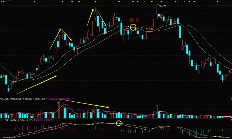 從上面的實戰(zhàn)案例,我們就可以總結(jié)一下運用成交量看趨勢來規(guī)避騙線陷阱的技術(shù)要點:K線走波浪式上升趨勢,一浪高過一浪;成交量堆高點降低,顯示處了人氣不足;此時多空線若形成死叉,則必須出場。