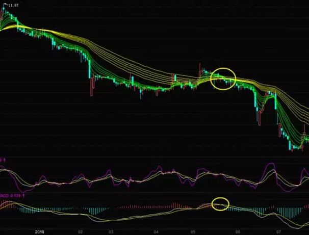 為什么反彈會(huì)失敗?主要的原因就是K線回升時(shí),成交量始終是沒有配合進(jìn)行增量的,這就說明了市場人氣的不足,主力沒有大量持續(xù)吸籌買入,此次反彈知識(shí)主力在趁機(jī)拉高出貨,所以投資者不可以盲目的進(jìn)場。那為了確認(rèn)判斷結(jié)果,投資者還需要觀察另外一個(gè)指標(biāo),macd。如果macd干脆地形成死叉,顯示為下降走勢,那么投資者就可以確認(rèn)后市下跌行情,如下圖所示。
