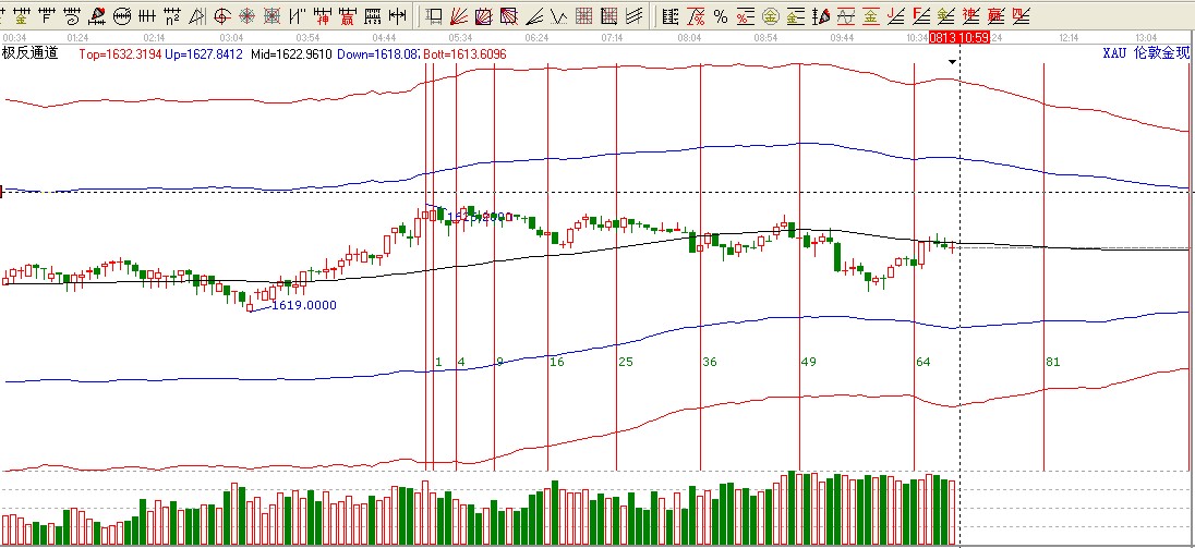5分極反通道下軌的位置在1618.4附近。也就是30分極反通道生命線的1618.4附近了。