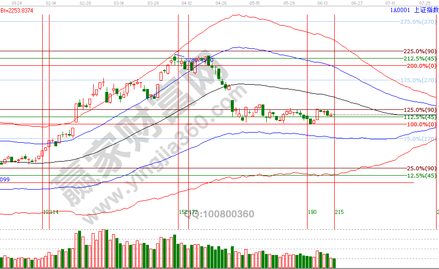 大盤連續(xù)三個交易日收盤在贏家江恩系統(tǒng)工具分析的關鍵區(qū)2880-2890之間,盤中擊破2880后收復,此區(qū)間是通過江恩價格圖表四方形和60分鐘極反通道生命線判斷得出。指數(shù)自3288點調整后持續(xù)的橫盤,主要是日K線擊破極反通道生命線進入弱勢區(qū),疊加下旬外部不確定性因素所導致,市場最終會按自身運行規(guī)律而運行,投資者所要做的就是順應市場、跟隨市場,并做出相對應的策略。從技術角度出發(fā),關鍵位不破保持延續(xù)反彈觀點。規(guī)則紀律讓我們在市場中生存,通過工具量化方法與規(guī)則,更能提升有效的判斷,交易不單純指的是買入、賣出,持倉與休息也是不可或缺的組成部分。6月19號盤中壓力是135度2911點、180度2928點,盤中支撐是0度2860、315度2844點。操作策略,指數(shù)處于極反通道弱勢區(qū)域的反彈走勢,繼續(xù)關注2880-2890區(qū)間得失做持倉決策,整體持倉保持3-5成。